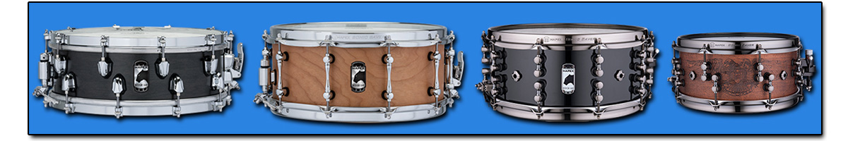- Versatus – 14” x6,5” med 8,55mm/7-ply stomme i lönn och mahogny med Sonic Saver Hoops. Designad tillsammans med Russ Miller. Finns även i en 14” x 4,5/8”-version