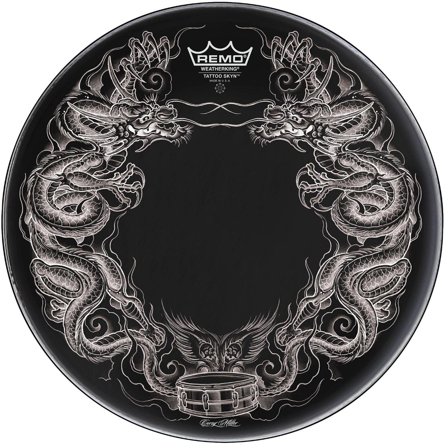 This is no ordinary bass drumhead. The Remo Tattoo Skyn "Dragon" brings together professional Powerstroke 3 construction and a striking dragon design created by tattoo legend Corey Miller, widely known from the TV show LA Ink. It's a resonant head that delivers both the sound and the visual presence to match your personality as a drummer.