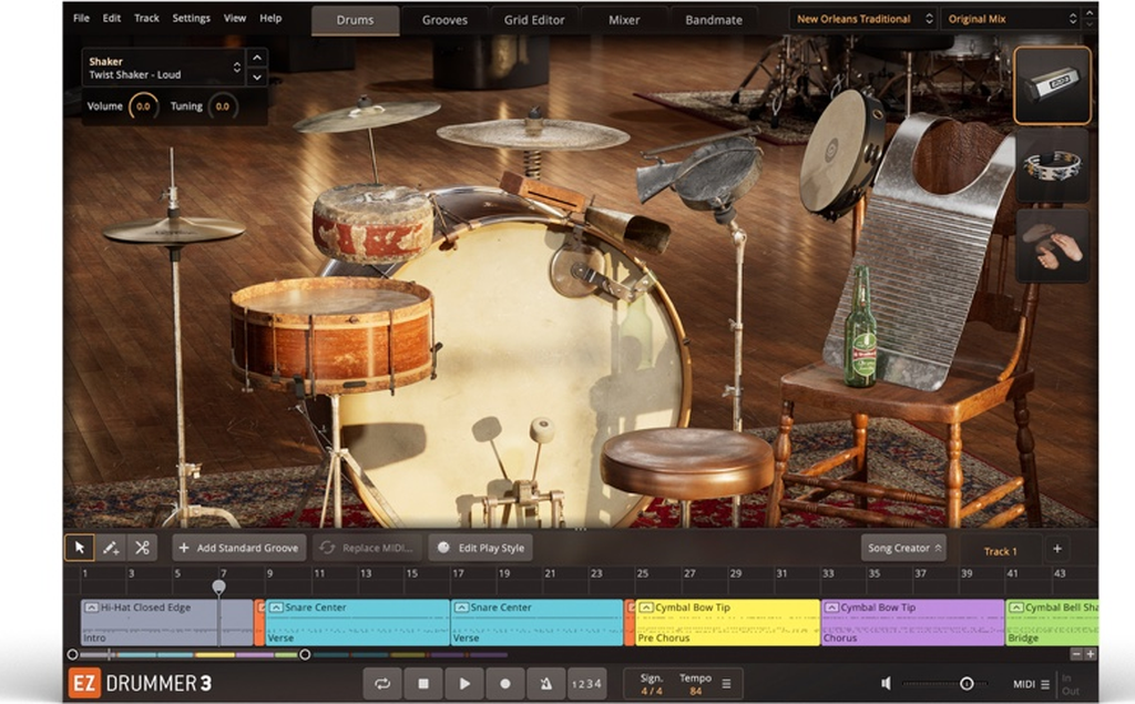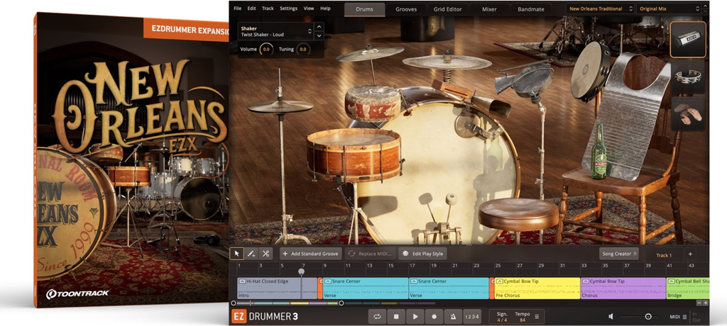 Five New Orleans‑inspired drum kits recorded at Esplanade Studios with mix‑ready presets and a unique Terence Higgins MIDI library.