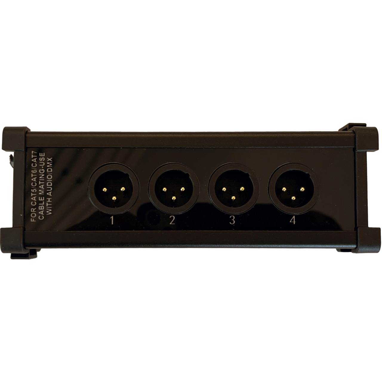 XLR Male to CAT Breakout Box. Supports the transmission of 4-channel audio signals trough a single CAT cable.