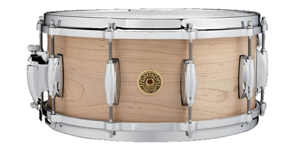 Solid Maple. 1-ply maple with reinforcing hoops. 30° bearing edge. Die cast hoops. 42 strands snare wire. Lightning throw-off. Remo heads. Made in U.S.A.. Can also be ordered in other colours and with Micro Sensitive throw-off.