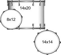 - 20"x14" Bass Drum: Mini Classic Lugs, Classic Claw Hooks, Elite Spurs. 14"x14" Floor Tom: Mini Classic Lugs, Triad Brackets, 12mm Legs 12"x8" Tom: Mini Classic Lugs, Atlas Mount