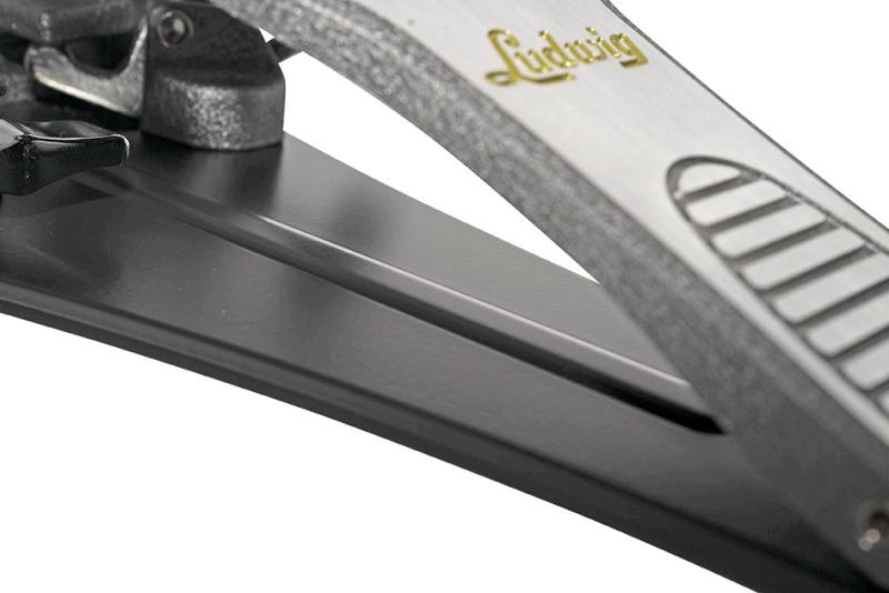 Ludwigs top-of-line-pedal i modernt snitt med justerbar cam och pedalvinkel. I Ludwigs snygga "Battle ship grey".