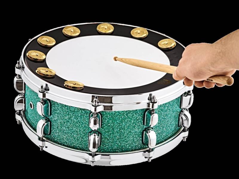 Åtta par standard mässings jinglar/bleck är fästa så man får tamburin till virveltrumman, samtidigt när du spelar ett fett backbeat!
