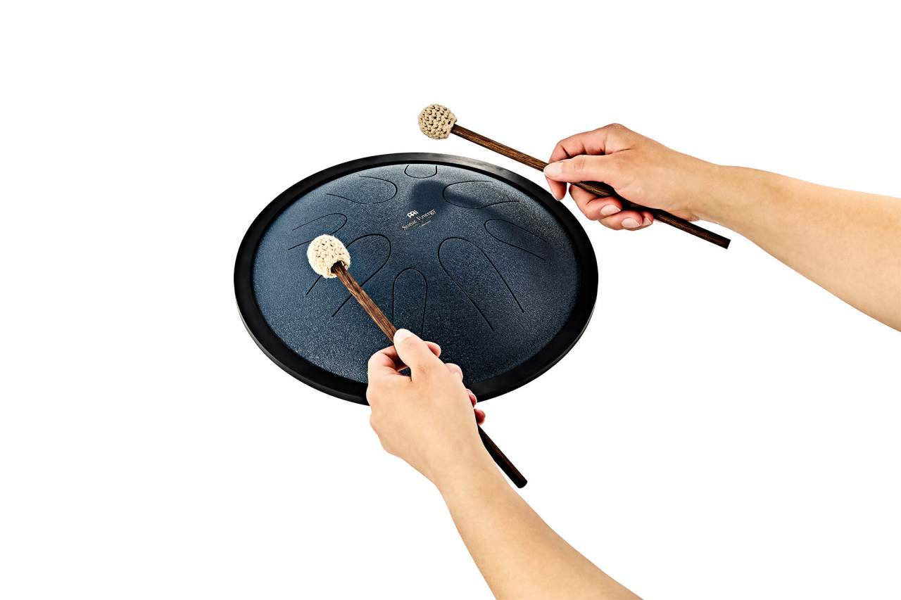 Dess åtta noggrant stämda toner skapar ett lugnande, melodiskt ljud som inbjuder till spontant spel och avkoppling. Compact Steel Tongue Drum kan spelas med fingrarna eller de medföljande garnklädda gummiklubborna med träskaft.