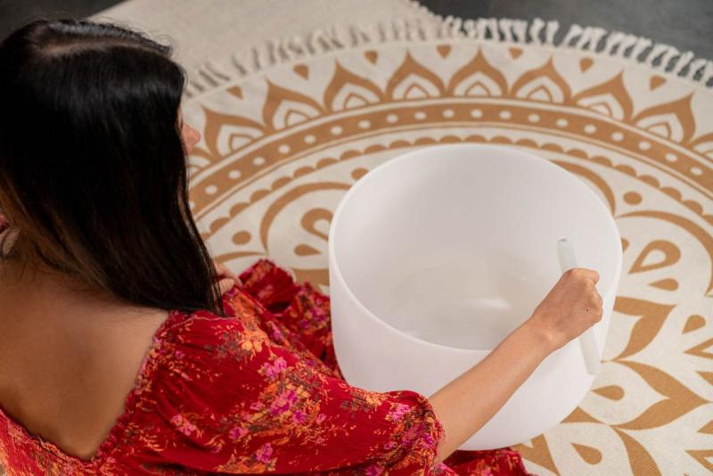 Vitfrostade Crystal Singing Bowls från Meinl Sonic Energy är gjorda av Quartz/kvarts, skapar en mycket trevlig aura med sitt ljud och design. Dess långvariga, sfäriska ton sprids när man tappar på singing Bowl eller gnuggas försiktigt så att energin kan kännas i hela dess omgiving. Alla Crystal Singing Bowls har en silikonring som bas för att undvika eventuell påverkan och för att skapa bästa möjliga resonans.
