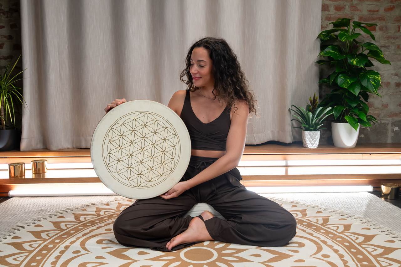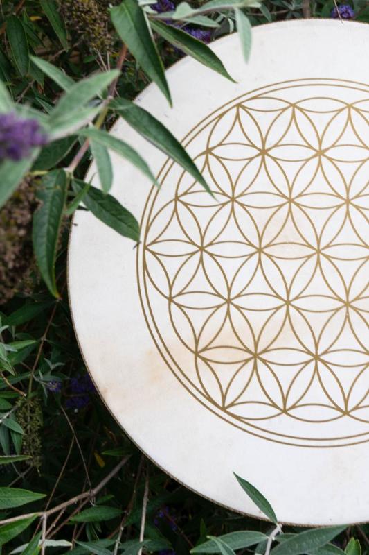 Flower of Life Wave Drums är tillverkade med två naturliga getskinn och har en speciell mjuk fyllning inuti, vilket skapar ett särskilt mjukt vågljud. Dekorerade med den symboliska Livets blomma bär de också på en stark visuell och andlig närvaro.