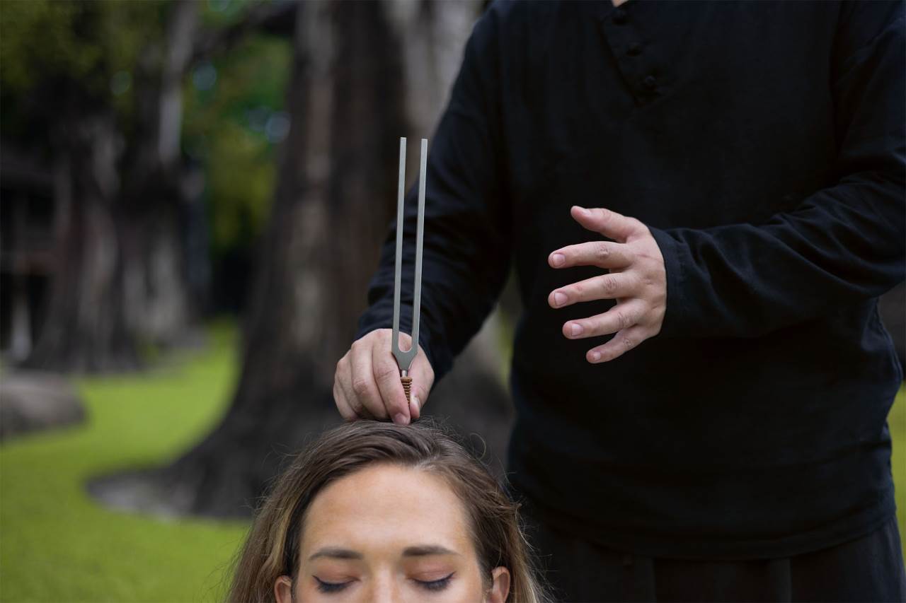 Varje gaffel är kopplad till ett av de Fem Elementen eller till yin och yang, vilket erbjuder ett holistiskt verktyg för ljudterapi, avslappning och egenvård. Applicerade på utvalda akupunkter kan de hjälpa till att släppa spänningar, återställa balansen och fördjupa kopplingen mellan kropp och sinne.