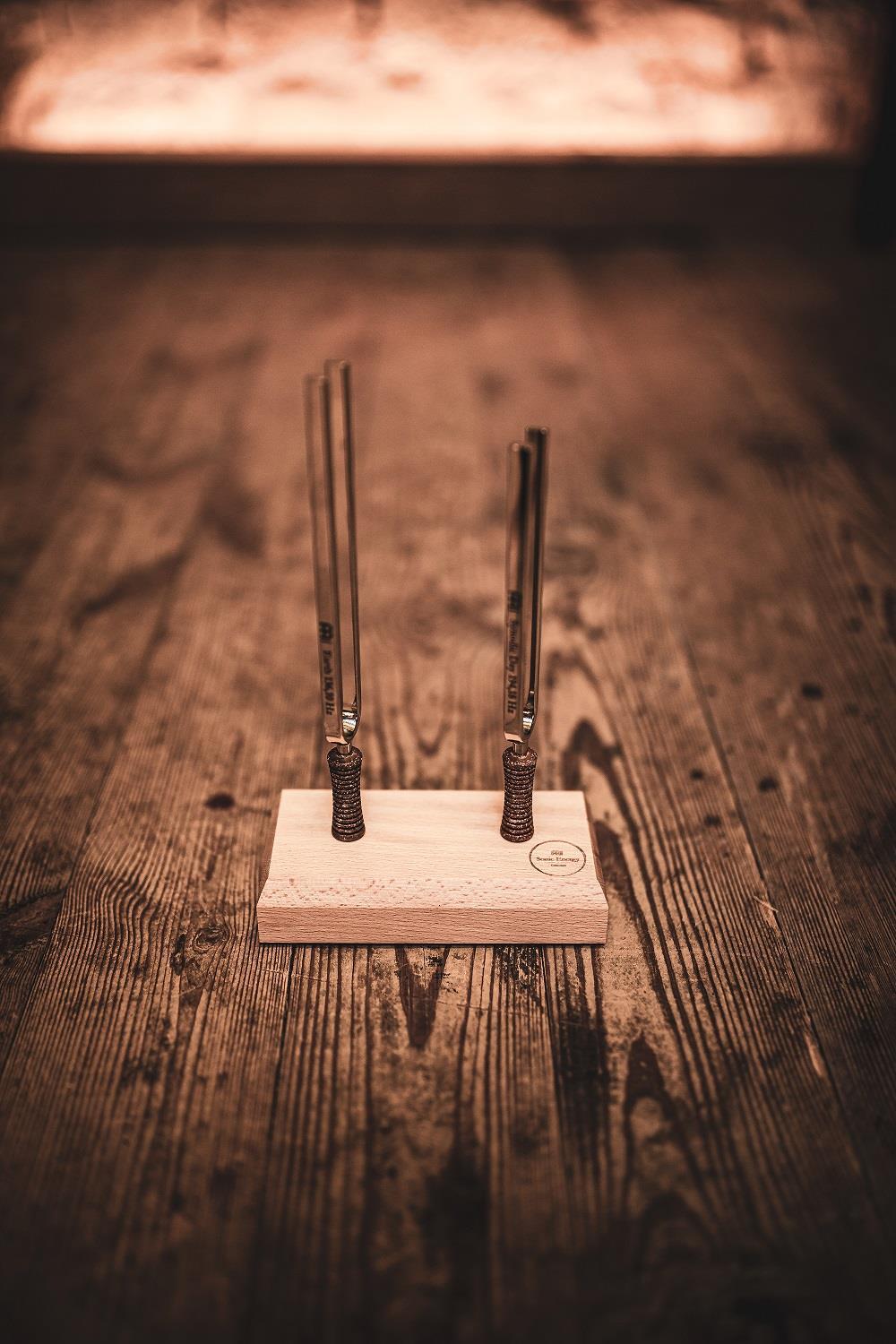 Planetary Tuned Tuning Forks tillverkas i Tyskland enligt Hans Coustos beräkning (The Cosmic Octave). Varje stämgaffel är inställd exakt på frekvensen för respektive himlakropp för att uppnå terapeutisk effekt.