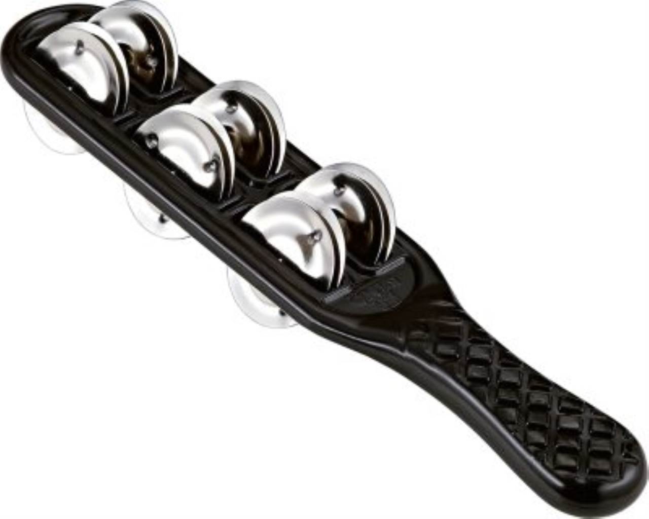 NINO513-BK Jingle Stick har sex par bjällror av Nickel Silver monterade på en ergonomisk ram av slitstark ABS-plast. En Jingle Stick spelas som en tam