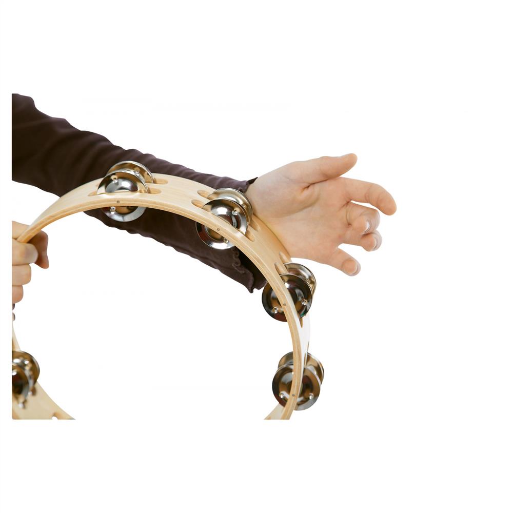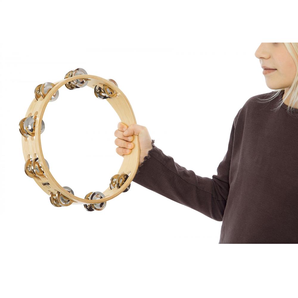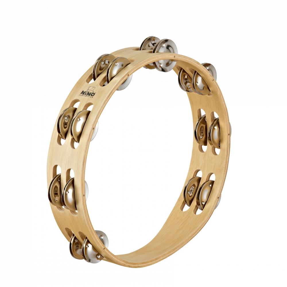 NINO15. Trätamburin som har en robust ram med dubbla rader av sex jingle-par som ger ett snyggt pärlande ljud.
