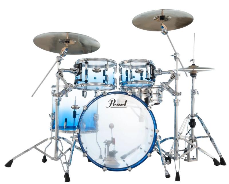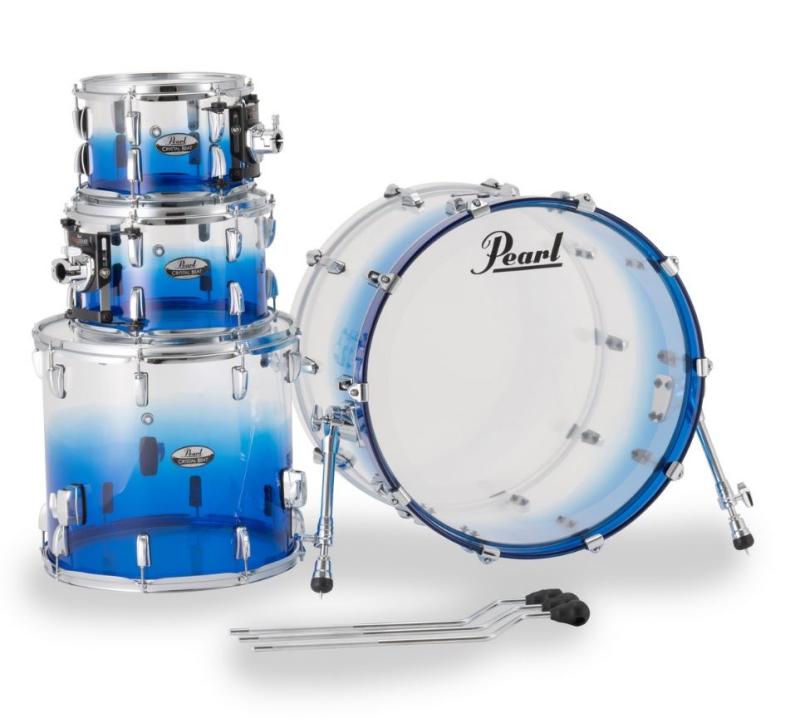 Kristallklart shellpack akryltrummor från Pearl! Standard-setup, 22", 10", 12", 16" LTD Edition Glacier Fade