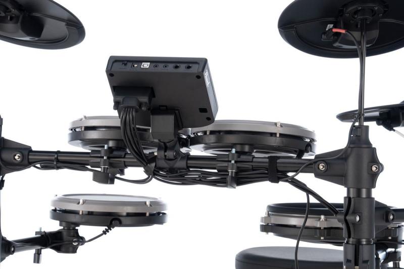 Innehåller fyra mesh-trumpads, två pedaler, tre cymbalpads, stabil trumstol, robust stativställning, trumpinnar och hörlurar.