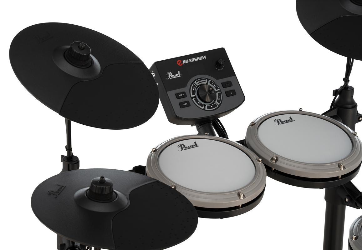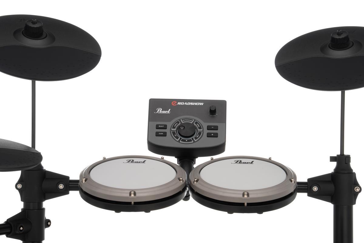 Ta steget utanför lådan och in i groovet nästan direkt med denna allt-i-ett-lösning för elektroniska trummor för nybörjare. eRoadshow är ett lättmonterat, prisvärt och i stort sett ljudlöst trumset som innehåller allt som behövs för att påbörja din trumresa.