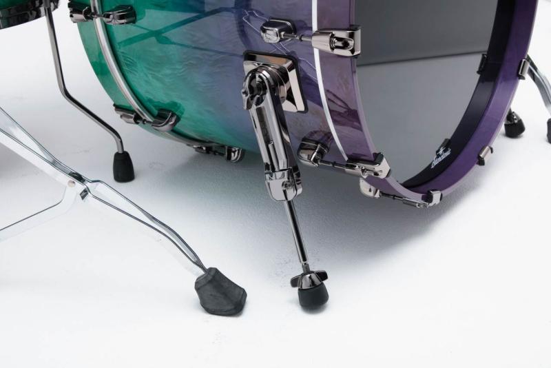 Die-Cast Hoops ger ett mer fokuserat sound och gör trummorna lätta att stämma med stabil känsla. Bastrumman är utrustad med gjutna stämhakar (Claw Hooks) med skyddande gummibussning som hjälper till att bevara finishen och minska oönskade vibrationer. Golvpukans Cushioned Floor Tom Legs med luftficka i gummifötterna bidrar till att resonansen inte stryps – du får mer liv och botten i rummet.