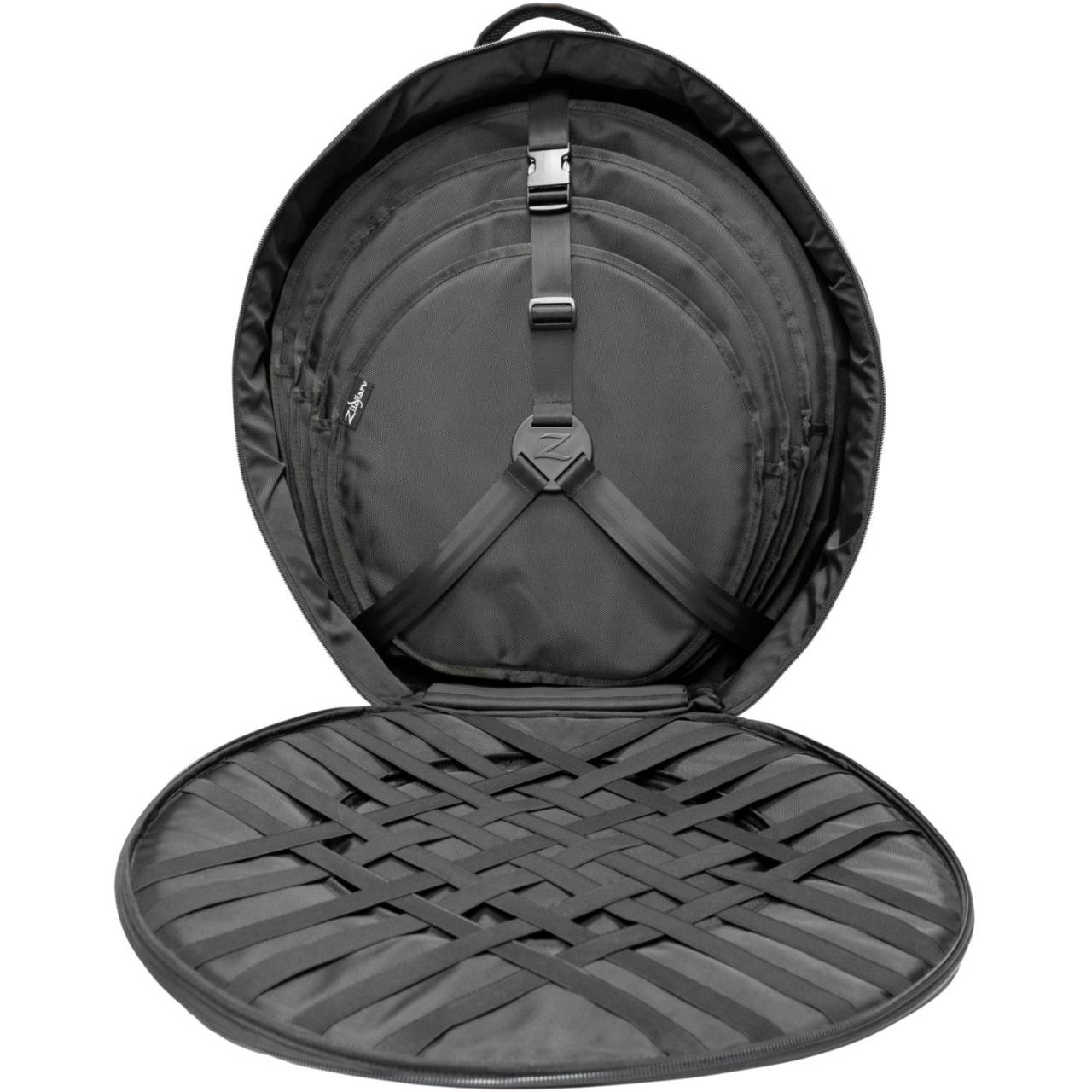 Modellen passar cymbaler upp till 24", är tillverkad i ett slitstark nylonmaterial som har en yttre coating för att stå emot väta och smuts på ett utmärkt sätt. Zildjian-logon är diskret för hålla designen så ren och exklusiv som möjligt. Den yttre fickan passar cymbaler upp till 15".